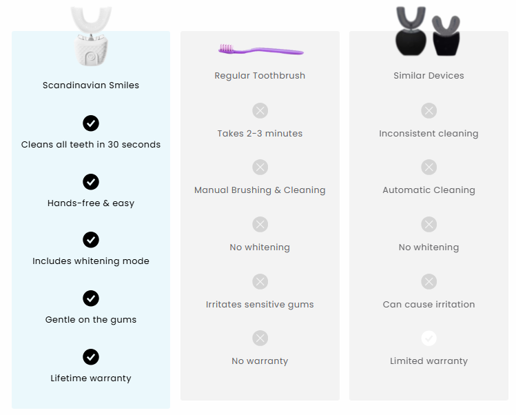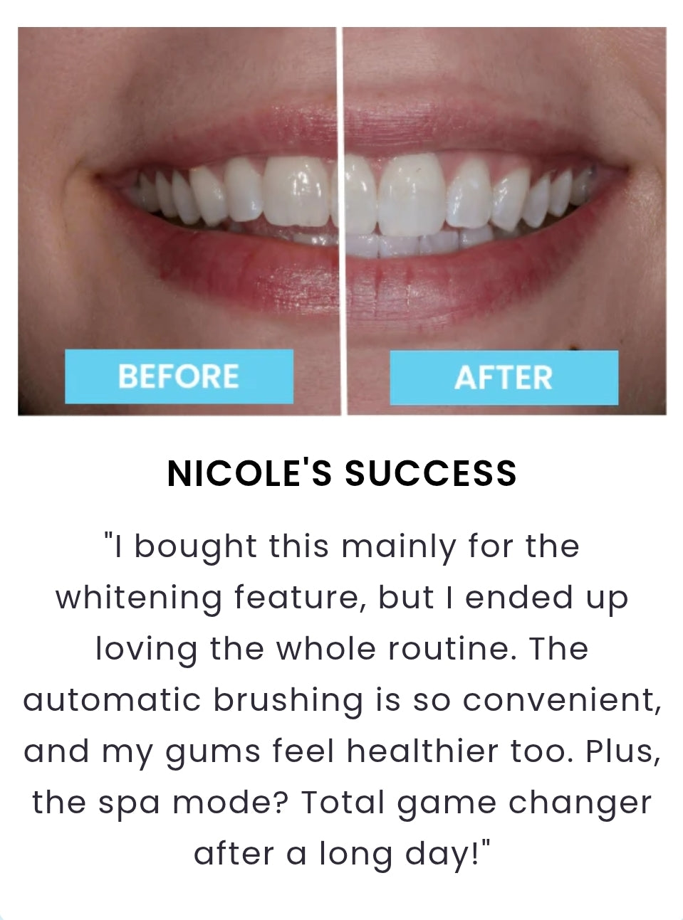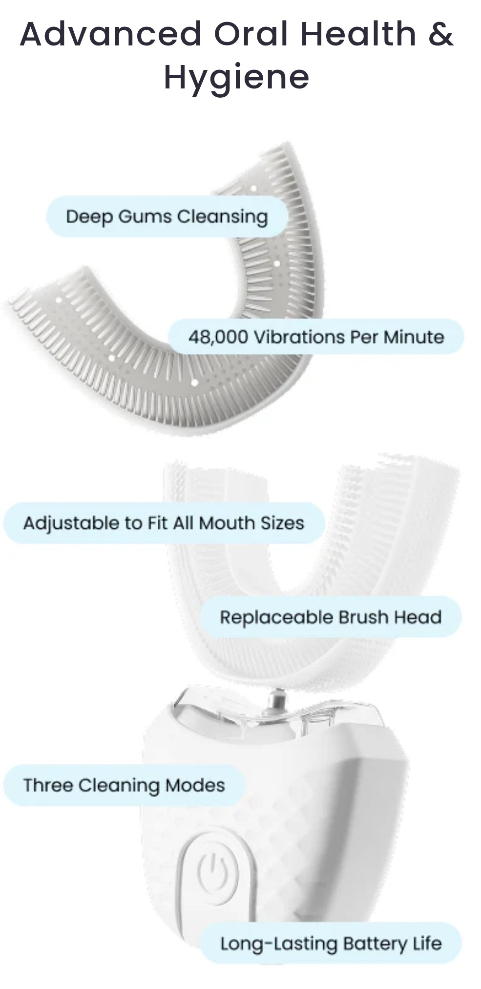 automatic, 30-second solution that deep- cleans every tooth, whitens gently with cold light, and promotes gum health - giving you a cleaner, fresher smile with zero effort.